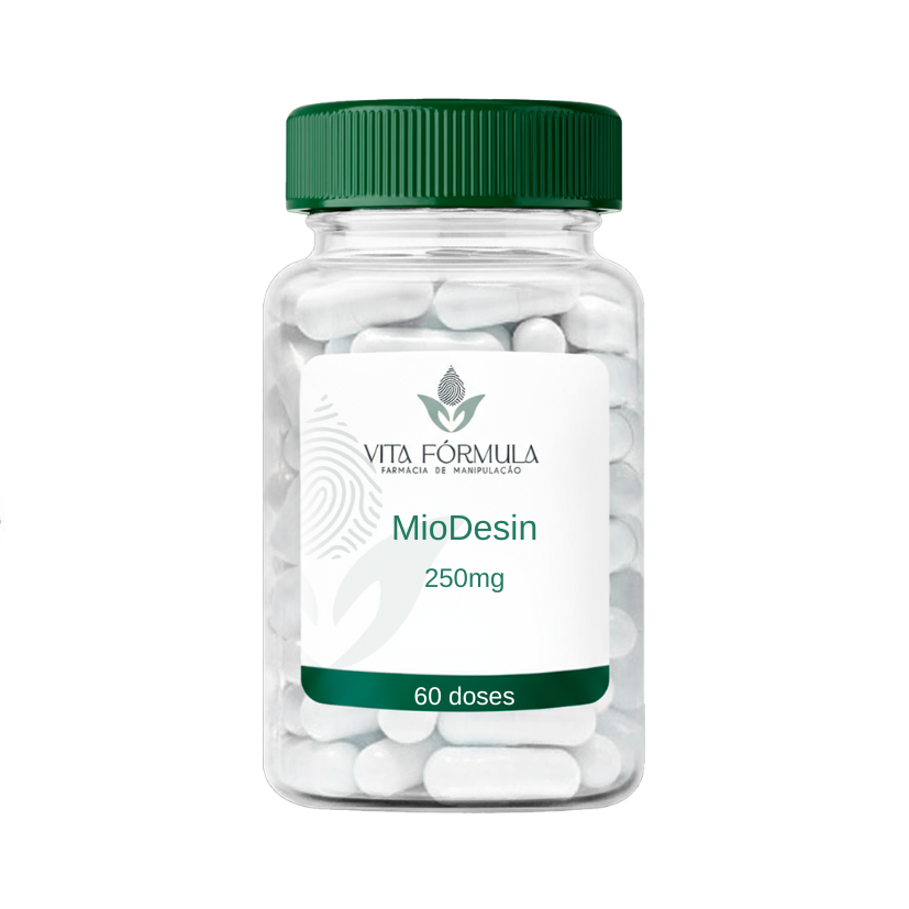 Miodesin é um complexo de fitoquímicos de origem natural (Uncaria tomentosa, Endopleura Uchi e HAematococcus pluvialis) com potente e eficaz atividade anti-inflamatória através da inibição de NF-KB. Não apresenta efeitos adversos típicos dos anti-inflamatórios esteroidais e não esteroidais.